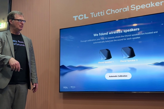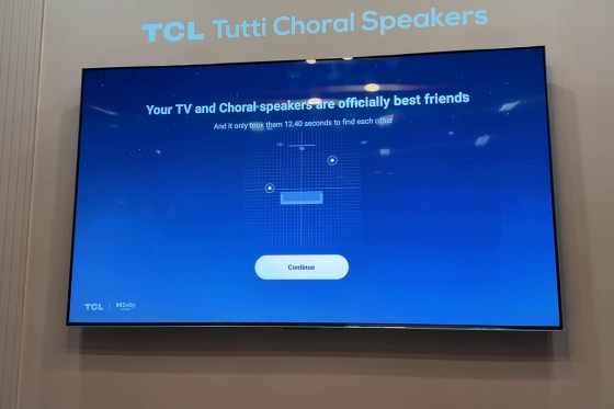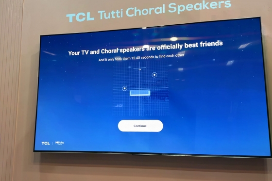 Le pivot central de tout le système est le téléviseur : la première étape consiste à lancer la procédure de configuration de Dolby Atmos FlexConnect, qui est entièrement guidée via l'interface à l'écran. Le téléviseur recherche immédiatement les enceintes compatibles dans la pièce et, une fois trouvées, affiche une icône avec le nom de chaque produit pouvant être utilisé avec la technologie Dolby. L'utilisateur peut profiter de tous ceux détectés ou seulement de quelques-uns, car même un seul haut-parleur suffit. La démonstration organisée à l'IFA a utilisé deux Haut-parleur TCL Tutti Choral, un modèle pas encore définitif qui devrait accompagner la sortie des téléviseurs Dolby Atmos FlexConnect en 2024.