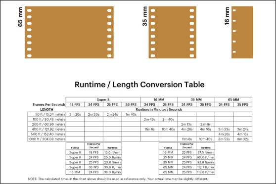 Les trois principaux négatifs de films : 16 mm, 35 mm et 70 mm.
