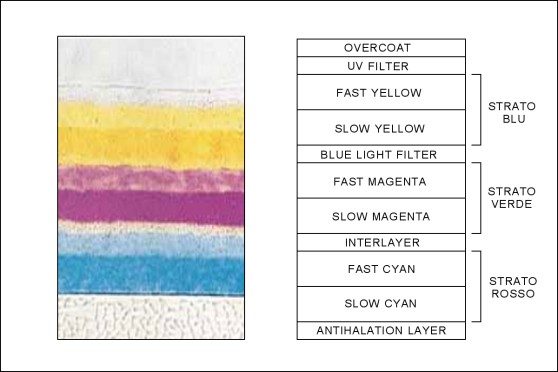 Le film du négatif se compose de plusieurs couches. Celles qui sont “sensibles” à la lumière sont au nombre de trois et sont composés de cristaux d'halogénure d'argentégalement appelés grains (d'où le terme grain du film) qui sont mélangées dans un substrat colloïdal. Chaque couche est sensible à un spectre de fréquence spécifique, réagit aux photons et, après un processus de développement chimique, les images sont fixées et la production du négatif est terminée. Le taille du grain est variable ; plus ils sont grands, plus ils capturent de photons et sont donc plus sensibles mais la résolution baisse inévitablement. Plus d'infos à cette adresse et à cette autre.