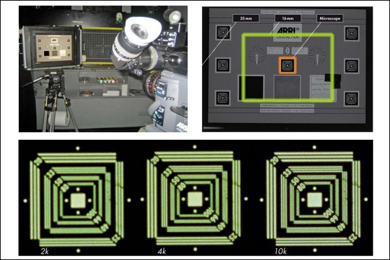En tout cas, la résolution du négatif a été sérieusement analysée par… Arri il y a quelques années, à l'occasion d'une étude sur la résolution nécessaire à la numérisation des films, disponible sur ce lien. Arri est une entreprise allemande qui fabrique des caméras de cinéma et des accessoires depuis plus de 100 ans et qui est une véritable institution. Pour l'analyse, Arri a utilisé une caméra ARRICAM ST avec un objectif HS 85mm F2,8 et un film Kodak 5245 50 ASA, c'est-à-dire de très faible sensibilité avec un grain très fin. D'après les calculs , la résolution horizontale du négatif S35 (Super 35mm) avec une sensibilité de 50 ASA est comparable à une matrice 4K. (4096 points). Par extrapolation, la résolution du 70mm 5 perf est de 8K tandis que celui du négatif 70 mm 15 perf utilisé dans la chambre IMAX 70mm est de 11K.