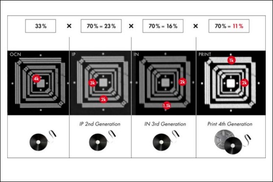Film positif 70mm projeté dans les cinémas IMAX n'a absolument pas une résolution horizontale de 18K et quiconque prétend cela est soit ignorant, soit un petit malin. Les résolution n'est qu'un aspect marginal de la qualité de reproduction d'un film et n'est certainement pas au sommet de l'échelle des valeurs du directeur de la photographie. Une production IMAX peut présenter certains avantages en termes de résolution horizontale par rapport à d'autres solutions, y compris numériques, et pourrait atteindre une résolution de 10K ou légèrement supérieure, mais… seulement si les négatifs de faible et moyenne sensibilité étaient scannés immédiatement. après le développement, avec des scanners d'une résolution d'au moins 12K, de préférence 16K (il n'en existe pas encore).