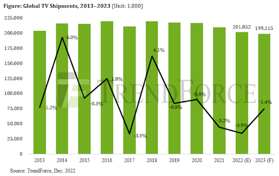 2022 n'a pas été une bonne année pour le marché de la télévision. La forte demande déclenchée par les restrictions de circulation pendant la période de pandémie a conduit de nombreuses personnes à changer de téléviseur entre 2020 et 2021. Les réouvertures progressives ont entraîné un retour à la sociabilité, favorisant à nouveau les activités en dehors du foyer. À ces scénarios s'est ajoutée la forte hausse de l'inflation, qui a considérablement grevé les poches des consommateurs.