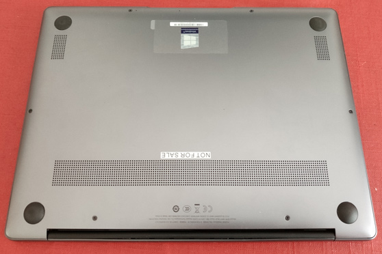 Le Matebook 13 est également très agréable d'un point de vue esthétique, avec une attention portée à chaque détail et une excellente finition diamant sur chaque coin, agréable au toucher. Il est bien conçu, avec une grande attention à la construction, entièrement fait de métal et est très fin et léger. Le support sur une surface plane est ferme et stable grâce à 4 pieds en caoutchouc dur qui dépassent légèrement de la base de l'ordinateur portable et assurent une friction suffisante. Grâce à un renfoncement dans la base de l'ordinateur portable qui forme une petite dent avec le bloc d'affichage, il peut aussi être ouvert confortablement d'une seule main.